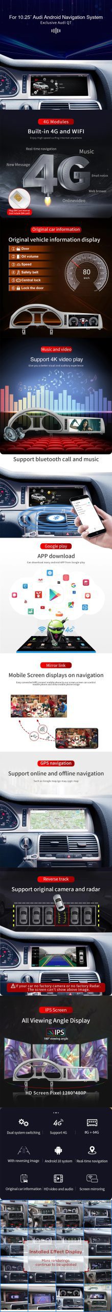 10.25″ Android Car Multimedia Stereo GPS Navigation System Custom Made for Audi Q7 2006 – 2015