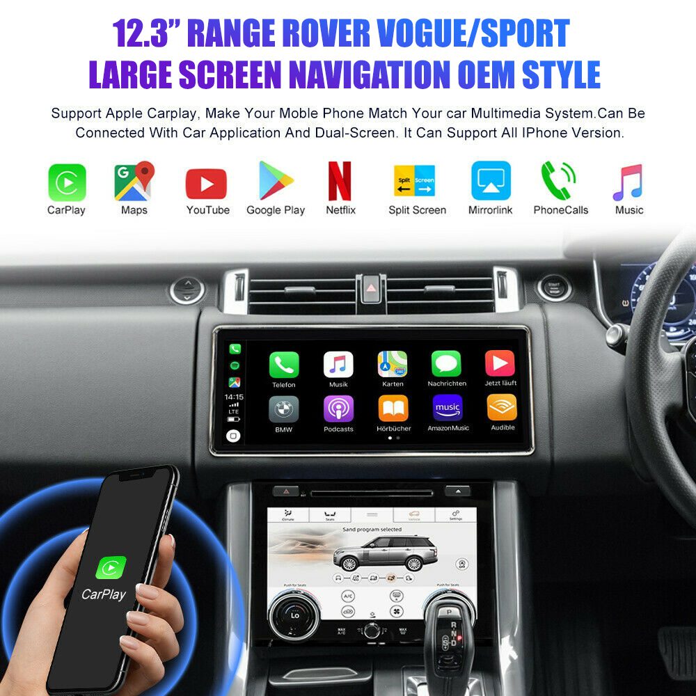 12.3″ Car Android Multimedia Player with built-in Apple CarPlay & Android Auto for Range Rover L405 & Range Rover Sport L494 OEM Style