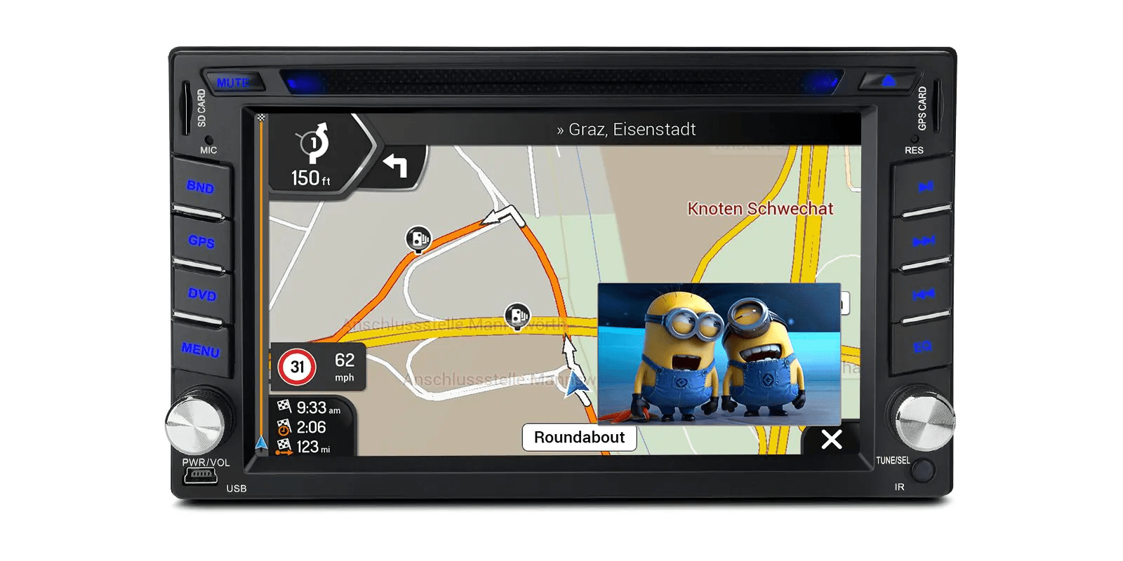Turn your USB port into an HDMI/RCA Output port for sharing screens with rear seat devices.