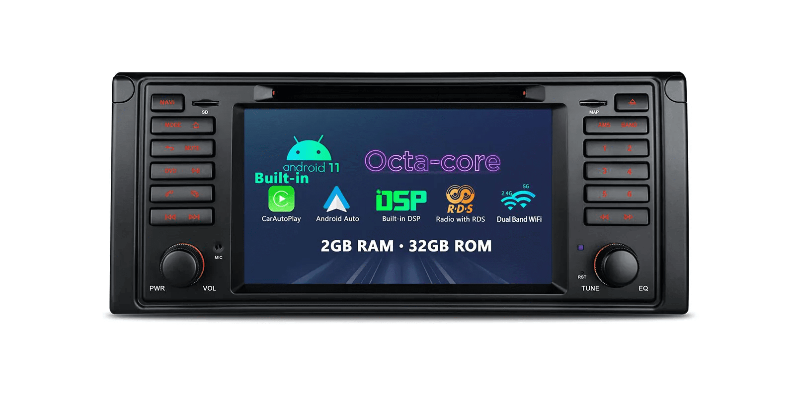 7″ Android Multimedia Car Stereo with Built-in Apple CarPlay & Android Auto Custom Fit for BMW E39 M5 (1999-2003), BMW E39 (1995-2003)