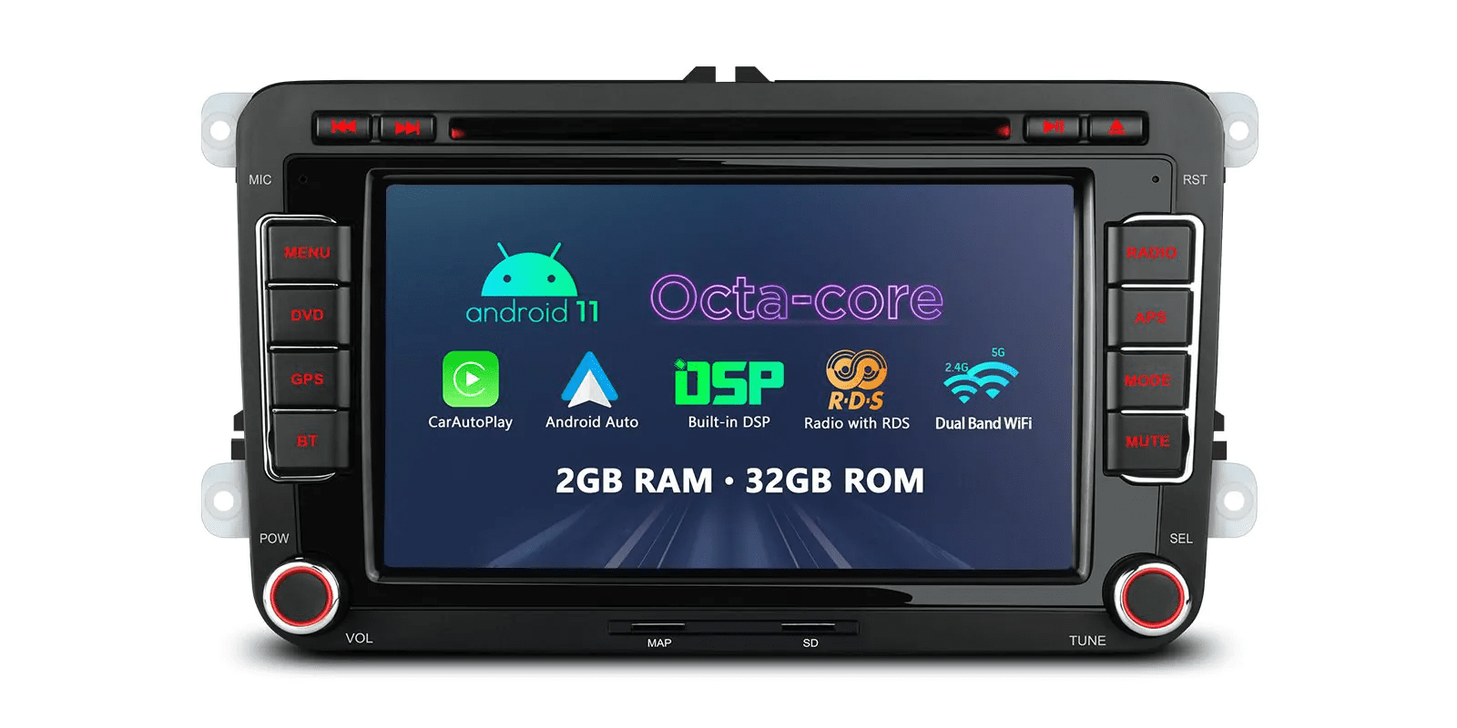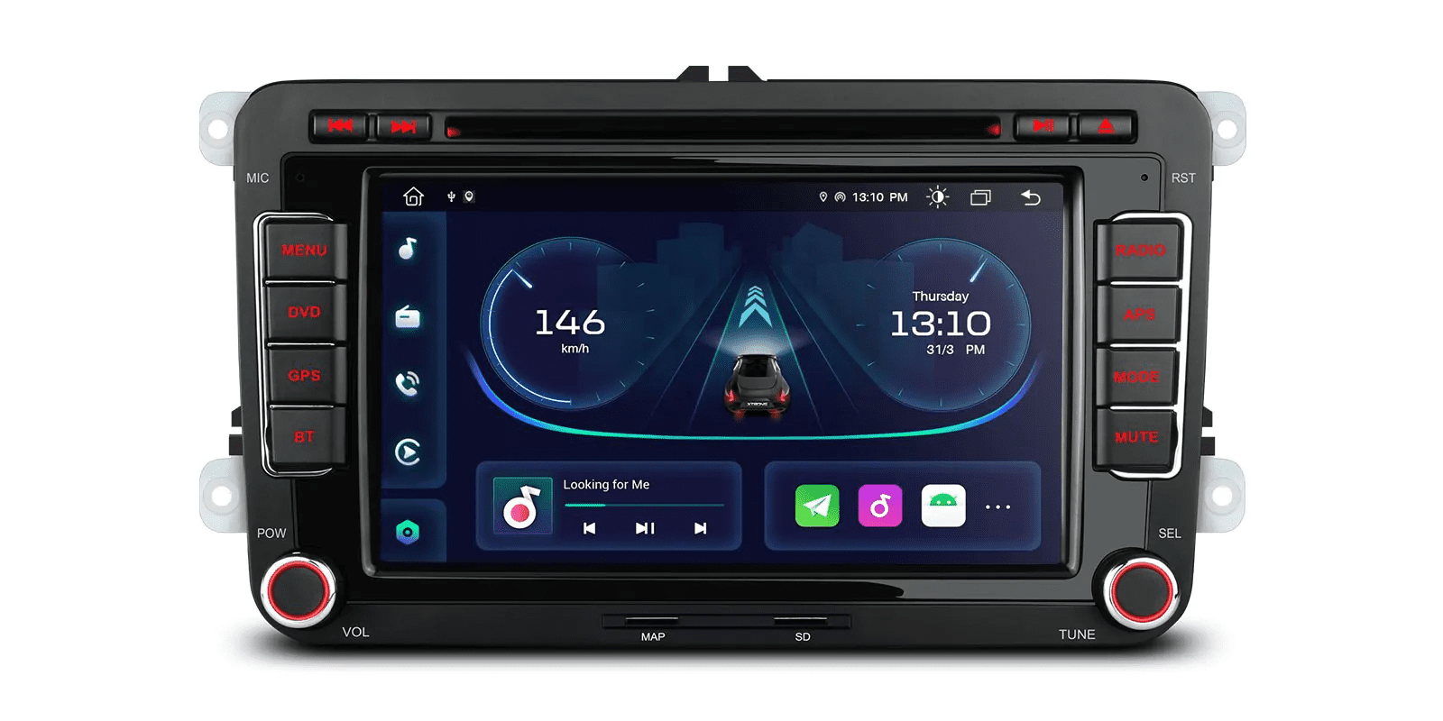 7” Android System HD Screen Multimedia Car DVD PLAYER with Built-in Carplay & DSP for Volkswagen, Seat, Skoda