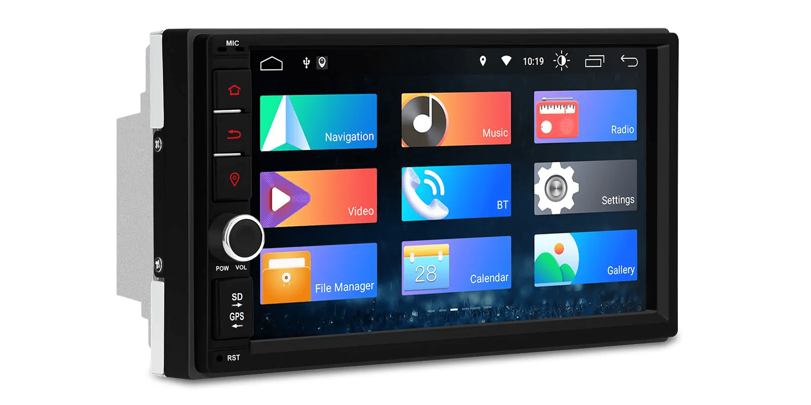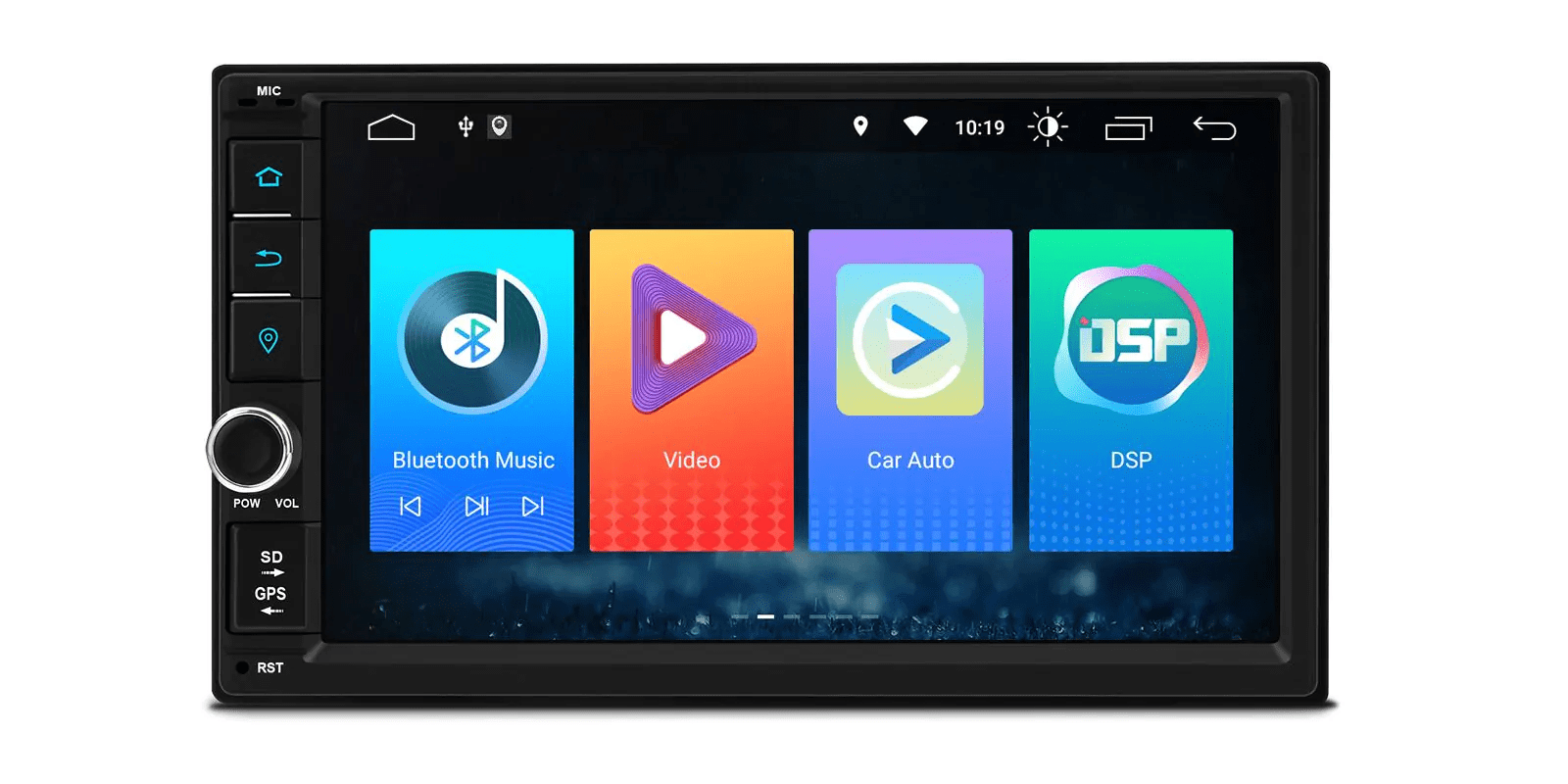 Android 10 Quad Core 2GB RAM + 32GB ROM 7″ Car Stereo Multimedia Player with GPS Navigation Built-in DSP Built-in CarPlay/Android Auto for Universal Cars with Double DIN Factory Radios