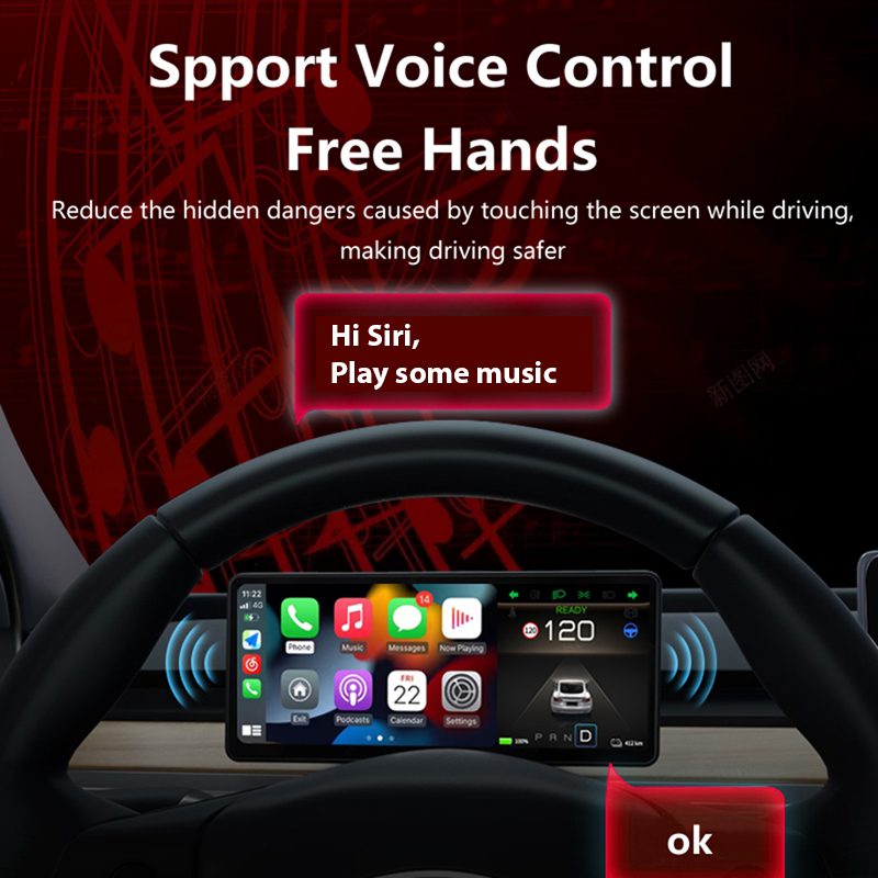 - Support split-screen display, real-time monitoring of safety information such as vehicle speed and indicator lights on the Carplay interface