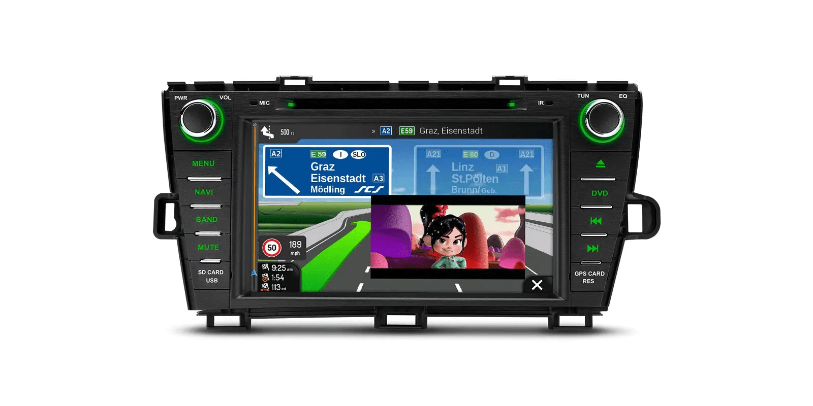 With the all-function output you can share all features simultaneously with your friends in the back seat. Thanks to the dual zone function, videos (and other files) on USB could be transmitted to the back seat monitors for your kids to watch, while the head unit is navigating. No more distractions.