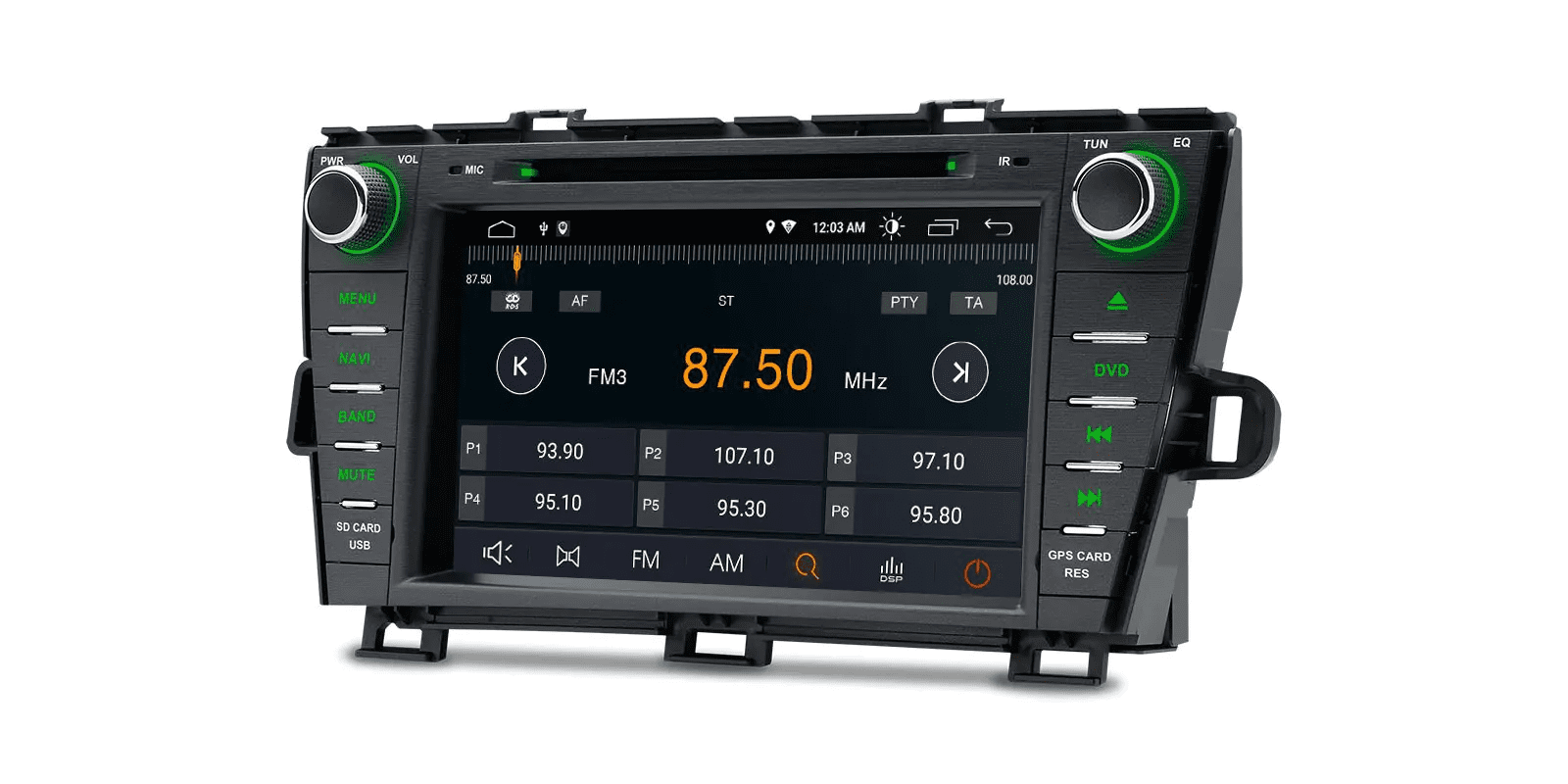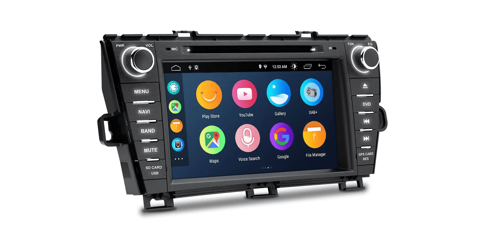 Android 12 Quad Core 2GB RAM + 32GB ROM Multimedia Car Stereo with 8″ Display Built-in CarPlay Built-in DSP Full RCA Output Picture in Picture Screen Mirroring Custom Fit for Toyota Prius
