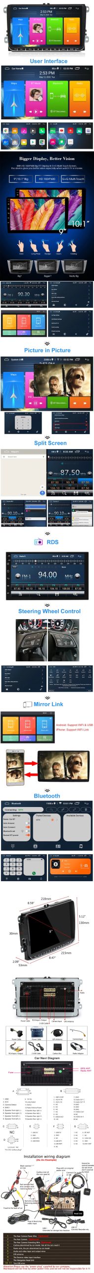 Volkswagen POLO/PASSAT/GOLF/TOURAN/SHARAN GPS Navigation Radio Android 10 Car Multimedia Player with Bluetooth , Usb, Aux