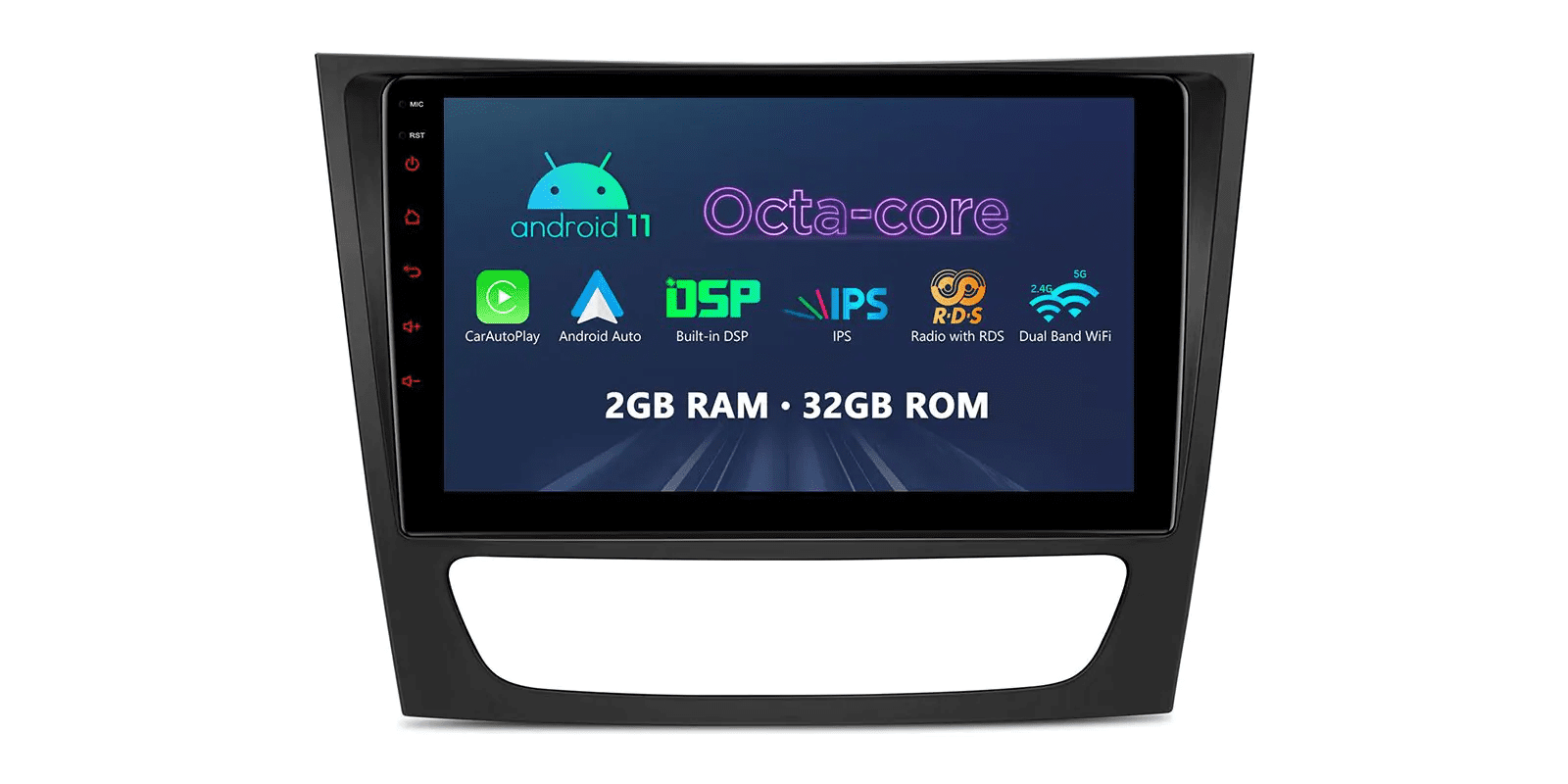 Android Multimedia Car Stereo With 9″ Display Built-In Apple CarPlay & Android Auto Custom Fit For Mercedes-Benz E-Class W211 (2002-2008)