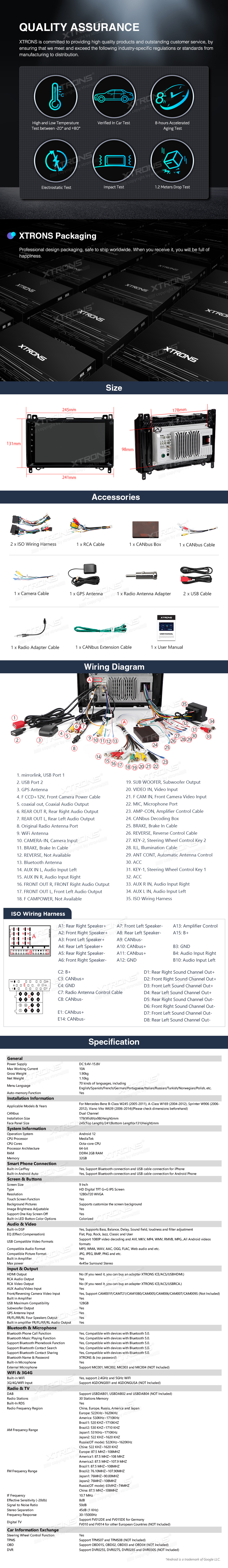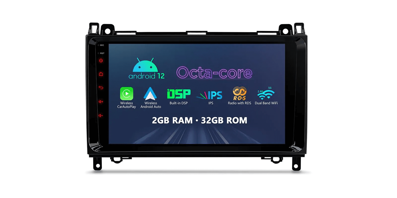 Android Multimedia Car Stereo With 9″ Display Built-In Apple CarPlay & Android Auto Custom Fit For Mercedes-Benz Mercedes-Benz W245/W169/W639/W906