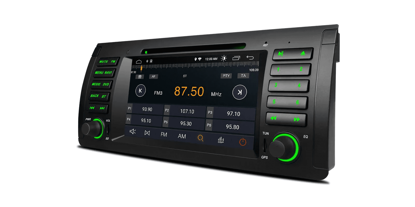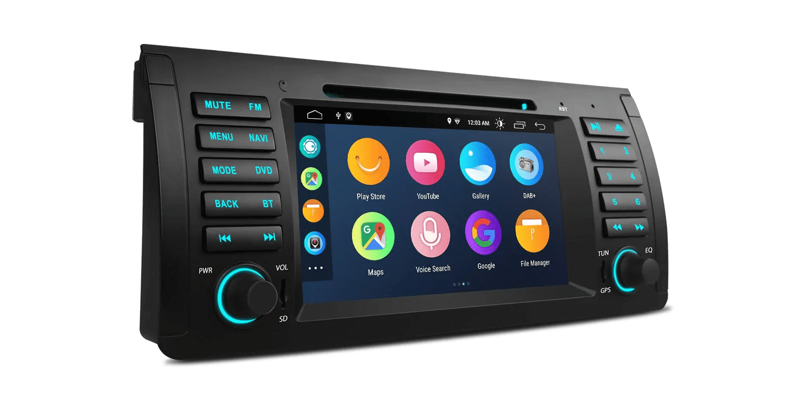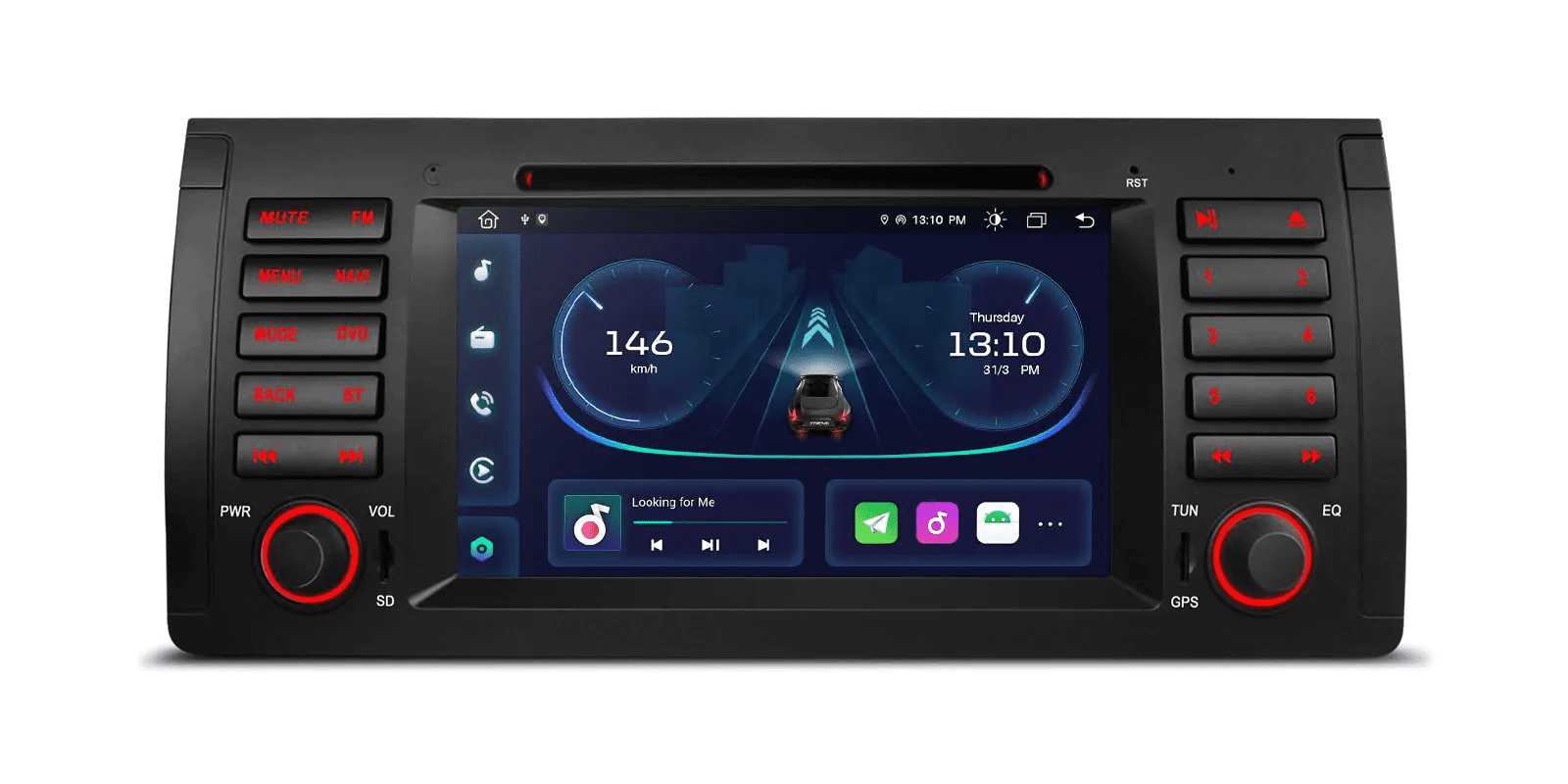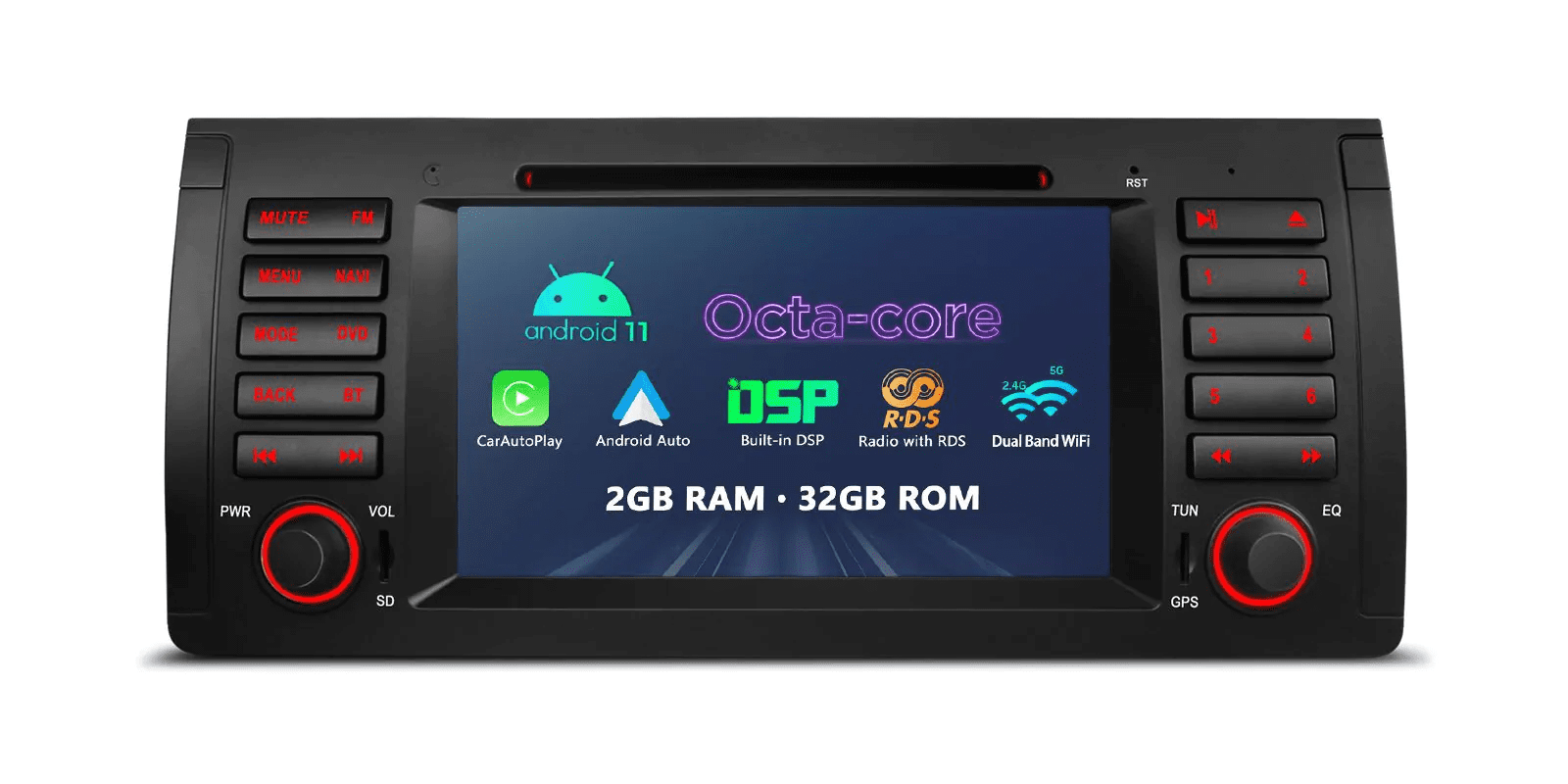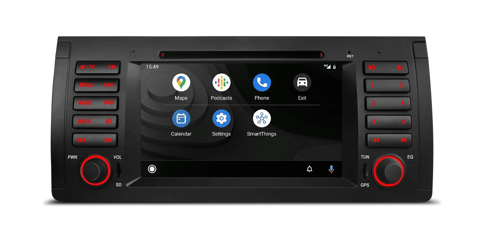 Android Multimedia Player With 7″ Display Built-In Apple CarPlay And Android Auto Custom Fit For BMW X5 E53 (1999-2006)