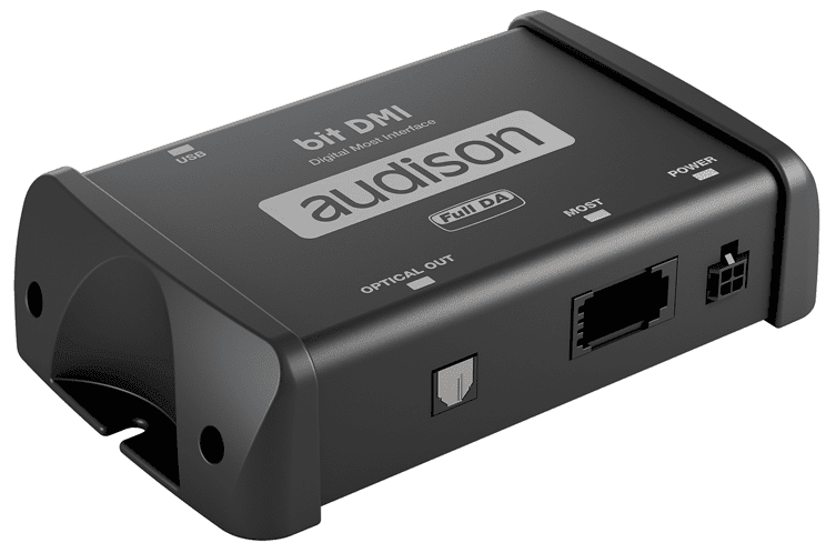 As vehicle manufacturers adopt the MOST serial bus management system in their vehicles, it has become increasingly important to find ways to grab and transport their perfectly good digital audio signals to an on-board signal processor or amplifier with a digital input in order to ensure the upmost signal integrity. This in turn enables car owners to upgrade their car audio while maintaining full functions of the vehicle’s on-board systems. The bit DMI can pick up the vehicle’s MOST signal at any connection point and convert it to a TOSLINK optical output. With many MOST equipped vehicles now handled by this fantastically versatile interface, the future of great sounding car audio is preserved and drivers may once again choose the audio upgrades of their choice.
