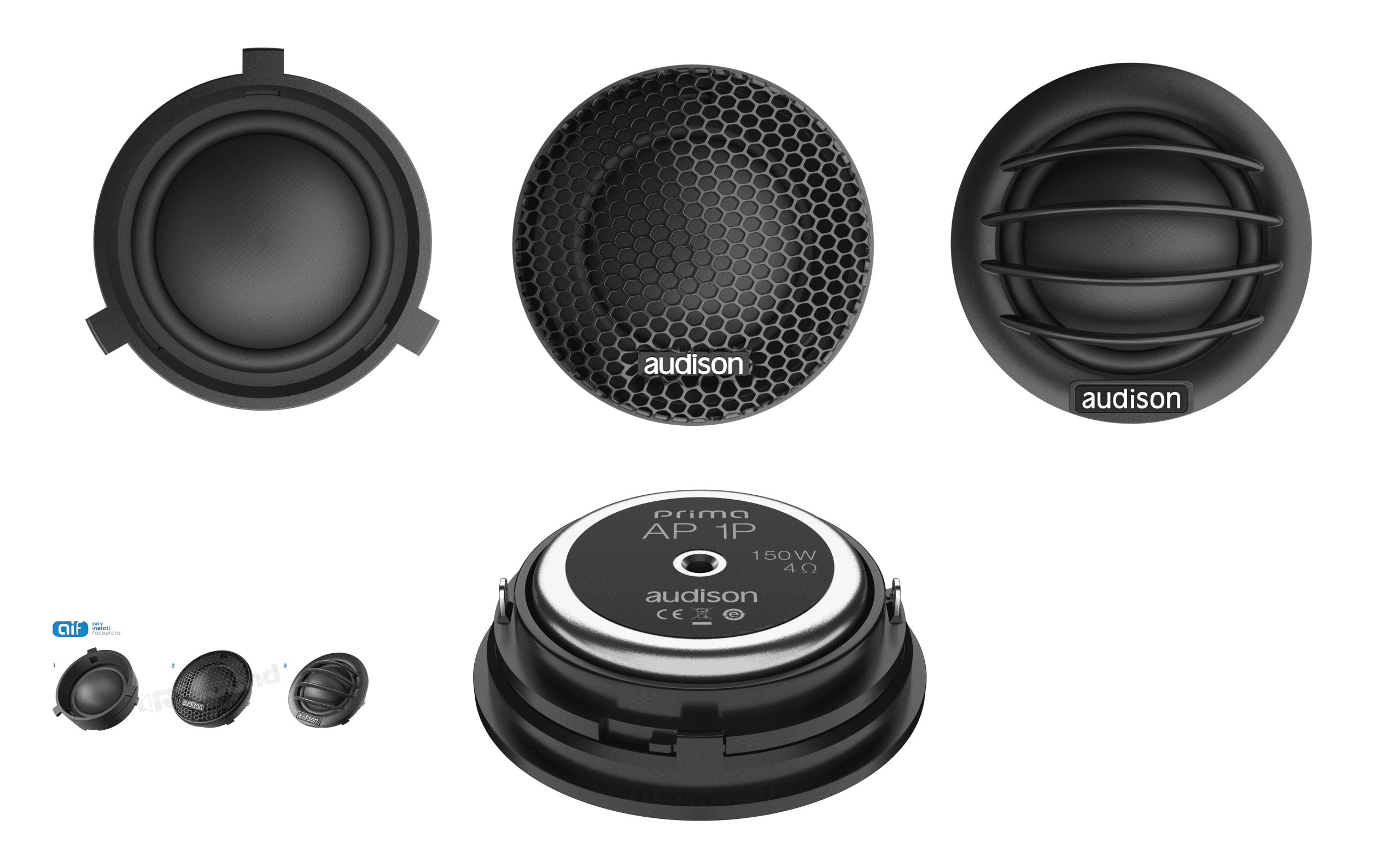 The exclusive AIF technology (Any Install Faceplate) of the AP 1P Tweeter component provides the installer with three different faceplates for total application versatility and a significant reduction in installation time. The double Neodymium tablet used in the motor provides an excellent extension in high frequency and together with the 1 in. CCAW voice coil ensures an outstanding dynamic response.