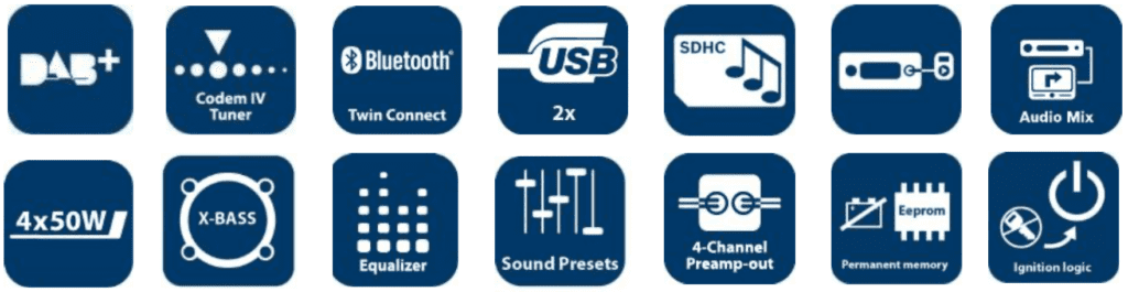 Its operating concept, the simple design and the crystal-clear reception made a significant contribution to the popularity of the original Bremen car radio. For the new edition, we took over the styling of the original model, but at the same time gave the radio modern Variocolor lighting for the buttons and the display. Thanks to the Blaupunkt Codem FM RDS tuner and DAB+ digital tuner, first-class reception remains a strength of the new Youngtimer car radio. The numerous serial interfaces are new, including two USB ports, an auxiliary connection and an SDHC slot – audio streaming via Bluetooth is also not a dream of the future for the returning legend. This radio is also “Made for iPhone/iPod” and guarantees a corresponding compatibility. All settings are saved permanently even if the battery is disconnected. A DAB+ windshield antenna is also included – so the entertainer has arrived in the present.