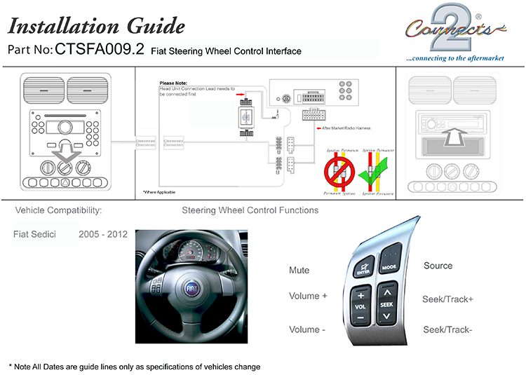 The CTSFA009.2 Steering Wheel Interface allows you to change the factory original headunit to an aftermarket car stereo whilst maintaining the use of your factory stalk/steering controls.