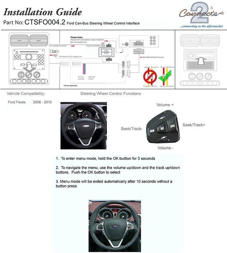 The CTSFO004 Steering Wheel Interface allows you to change the factory original headunit to an aftermarket car stereo whilst maintaining the use of your factory stalk/steering controls.
