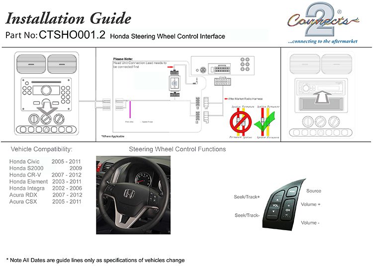 The CTSHO001.2 Steering Wheel Interface allows you to change the factory original headunit to an aftermarket car stereo whilst maintaining the use of your factory stalk/steering controls.