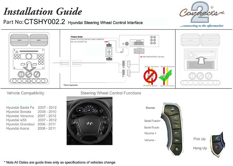 The CTSHY002.2 Steering Wheel Interface allows you to change the factory original headunit to an aftermarket car stereo whilst maintaining the use of your factory stalk/steering controls.