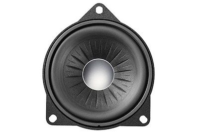 100 mm plug & play midrange speaker with ribbed, impregnated paper membrane and 25 mm silk dome tweeter. Loudspeaker with flat flange for mounting in doorboards, bolting in front. Vehicle specific connections for tweeter and midrange speaker, developed and produced in Germany.