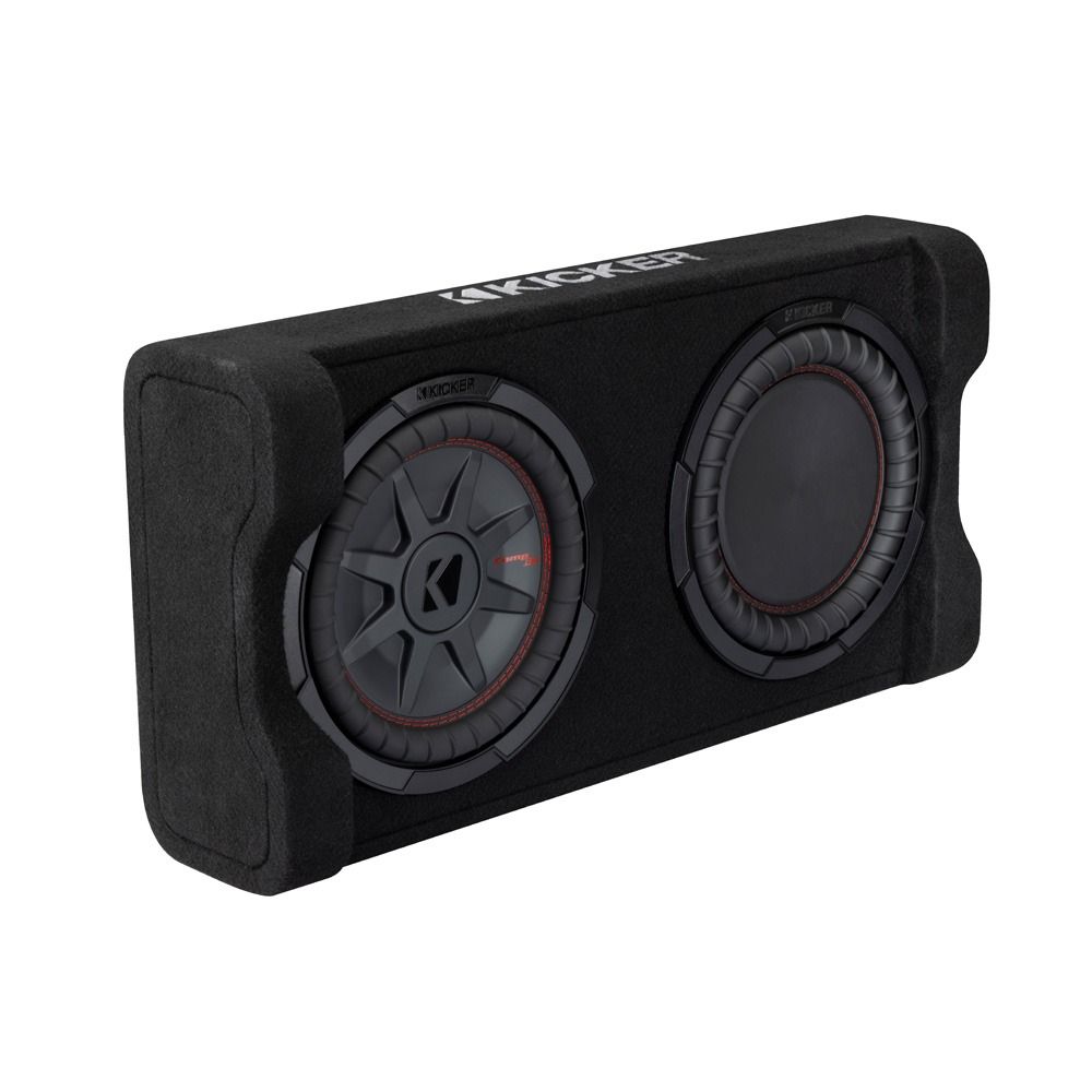 PTRTP Powered Down-Fire Enclosures are loaded with a passive reFLEX subwoofer and the KICKER CompRT active thin sub, delivering incredible bass without needing lots of space or an amplifier.