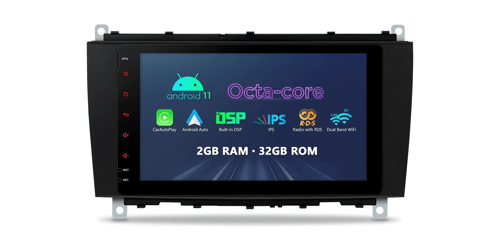 Android 12 Octa Core 2GB DDR4 RAM + 32GB ROM 8” Car Stereo Multimedia Player GPS Navigation System with Dual UI Automotive-grade Hardware Built-in CarAutoPlay & Android Auto & DSP Radio with RDS Coaxial Audio Output Custom Fit for Mercedes-Benz CLK Class