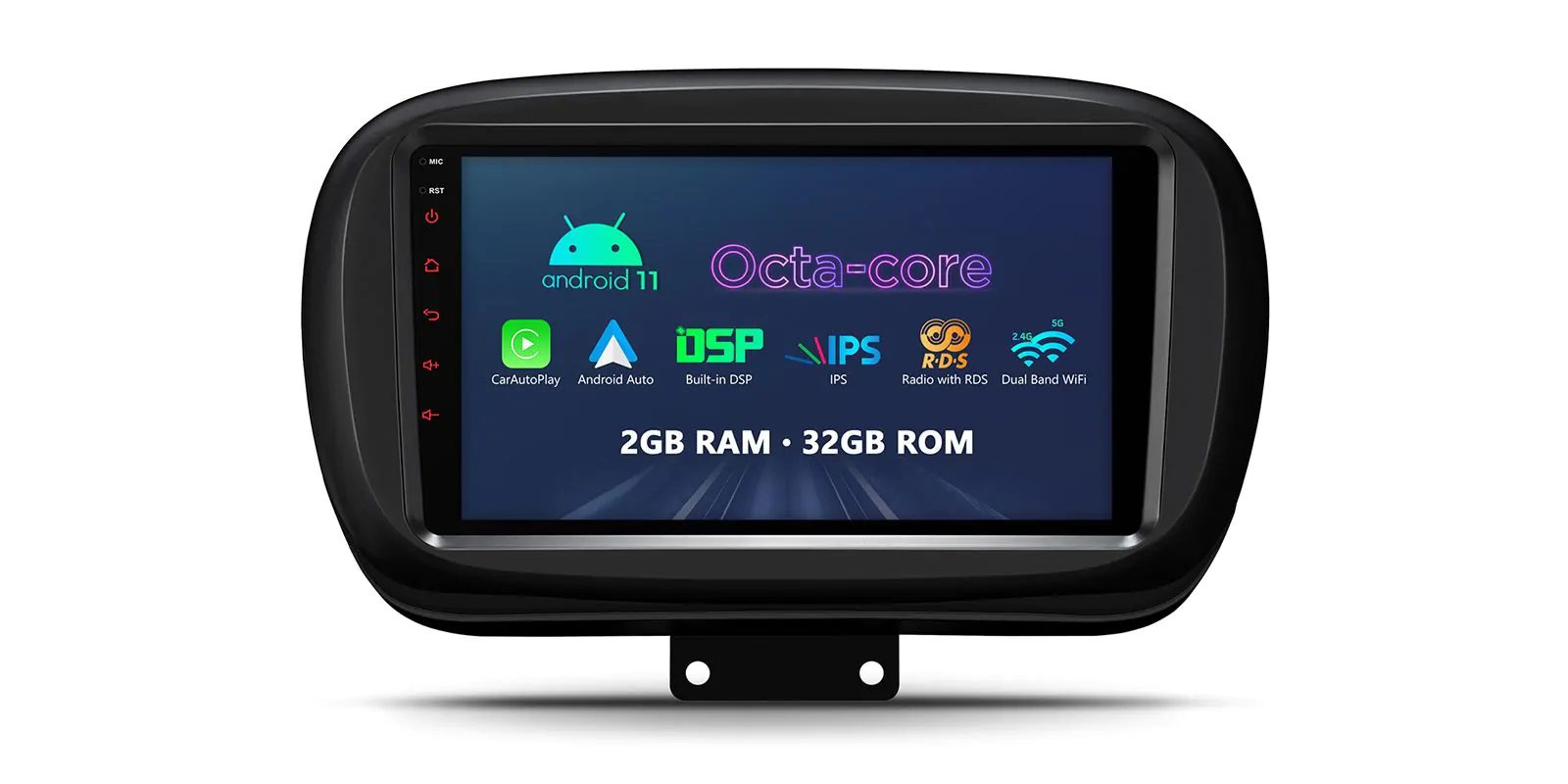 PEP9150XF 9” Large IPS Screen Car Stereo Multimedia Player Android 11 with Built-in CarPlay & Android Auto Custom Fit for FIAT 500X 2015-2020