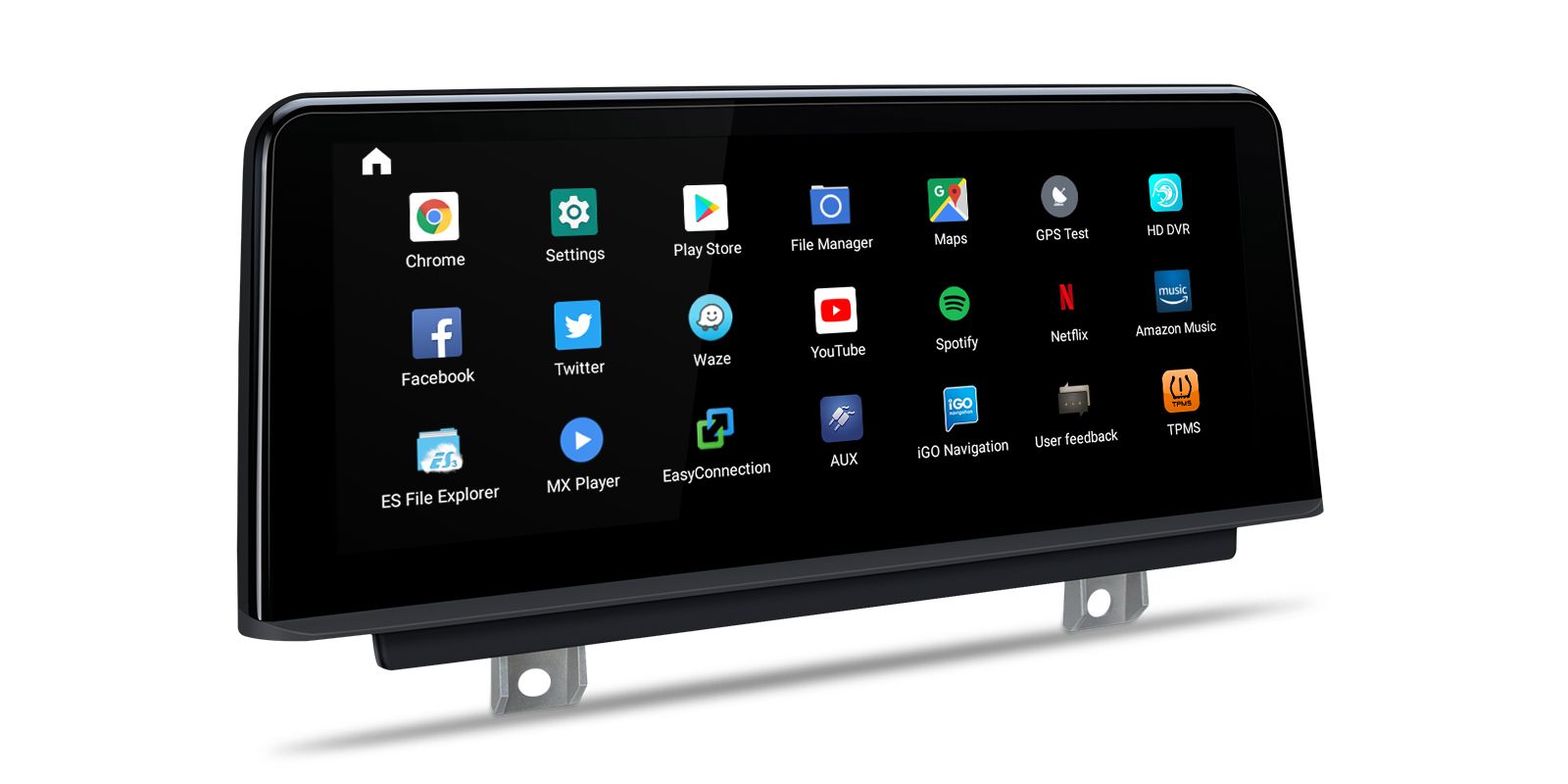 10.25″ Android Octa-Core 64Bit Qualcomm Processor 8GB + 128GB ROM Car Multimedia Navigation System with Built-in 4G Built-in CarPlay & Android Auto Fully Laminated Anti-reflective Screen Custom Fit For BMW with NBT System