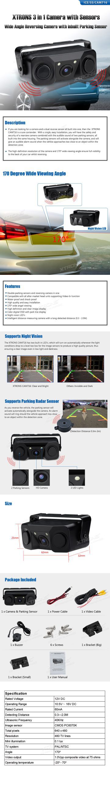If you are looking for a camera and a dual reverse sensor all built into one, then this is a sure contender. With a single, easy installation, you will have the safety and security of a rearview camera combined with the audible sound of two parking sensors, all built into the same housing. The parking sensors will activate alongside the camera, and will give an audible alarm sound when the vehicle approaches too close to an object within the detection zone.