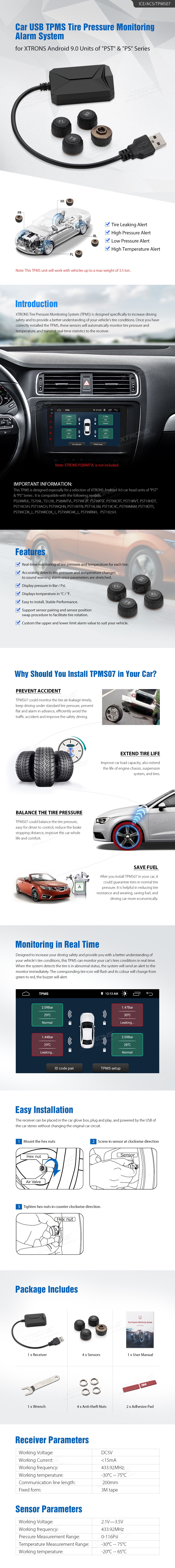 IMPORTANT INFORMATION: This TPMS is designed specially for a selection of XTRONS Android 9.0 car head units of “PST” & “PS” series. It is compatible with the following models: