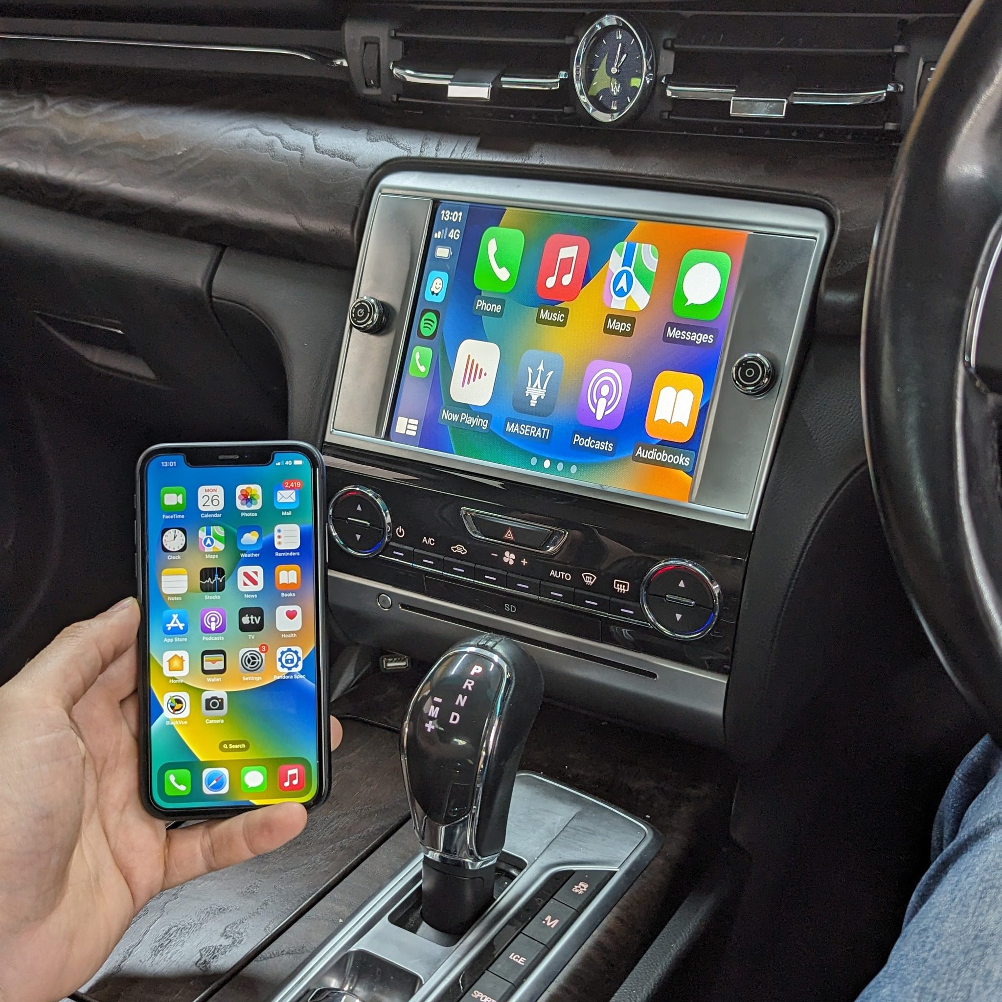 This Wireless CarPlay retrofit solution is a great addition to your Maserati. This unit enables you to use your favourite navigation apps on your phone such as Google Maps and Waze, listen to music, read messages, and everything your phone can do, you can do it on your car’s factory screen and stereo.