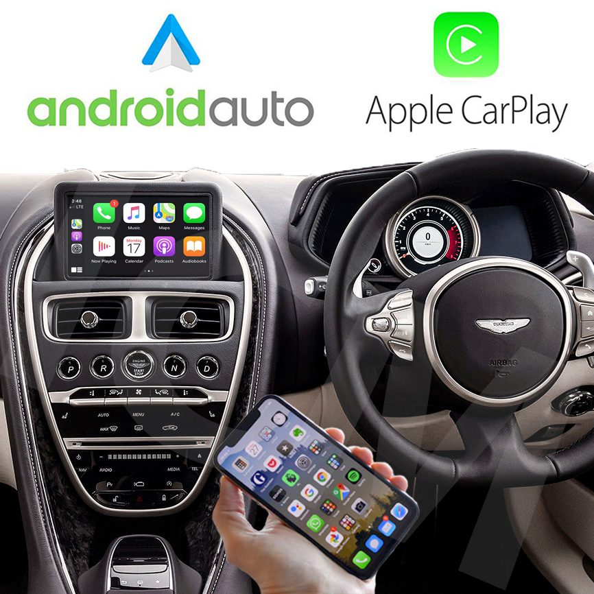 This Aston Martin CarPlay retrofit solution enables you to use full wireless/wired Apple CarPlay and wireless/wired Android Auto functionality on your cars original screen.