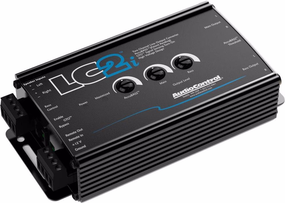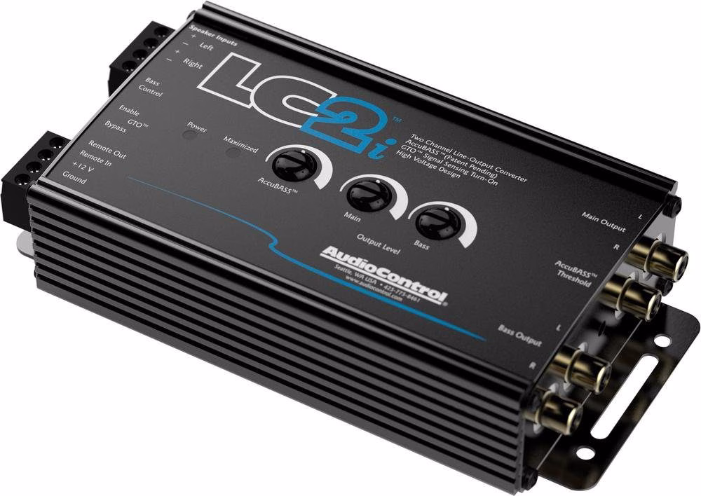 The AudioControl LC2i is a compact 2 channel processor with built in active input circuitry which allows it to accept speaker-level signals of up to 400 watts per channel from factory-installed source units or amplifiers. It converts them to high-quality pre-amp signals that can then be directed to after-market processors or amplifiers. Users can enjoy maximum sound quality while maintaining the use of factory volume and steering wheel controls.