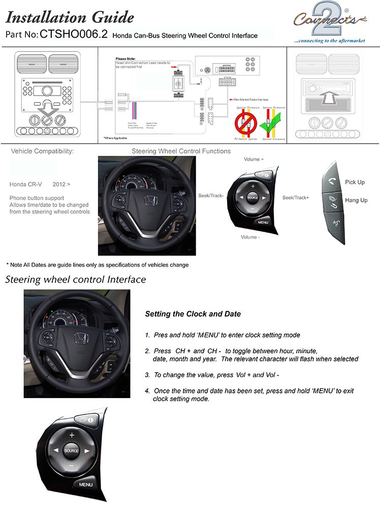 The CTSHO006.2 Steering Wheel Interface allows you to change the factory original headunit to an aftermarket car stereo whilst maintaining the use of your factory stalk/steering controls.