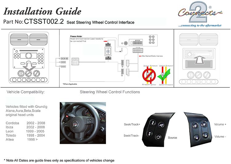 The CTSST001.2 Steering Wheel Interface allows you to change the factory original headunit to an aftermarket car stereo whilst maintaining the use of your factory stalk/steering controls.