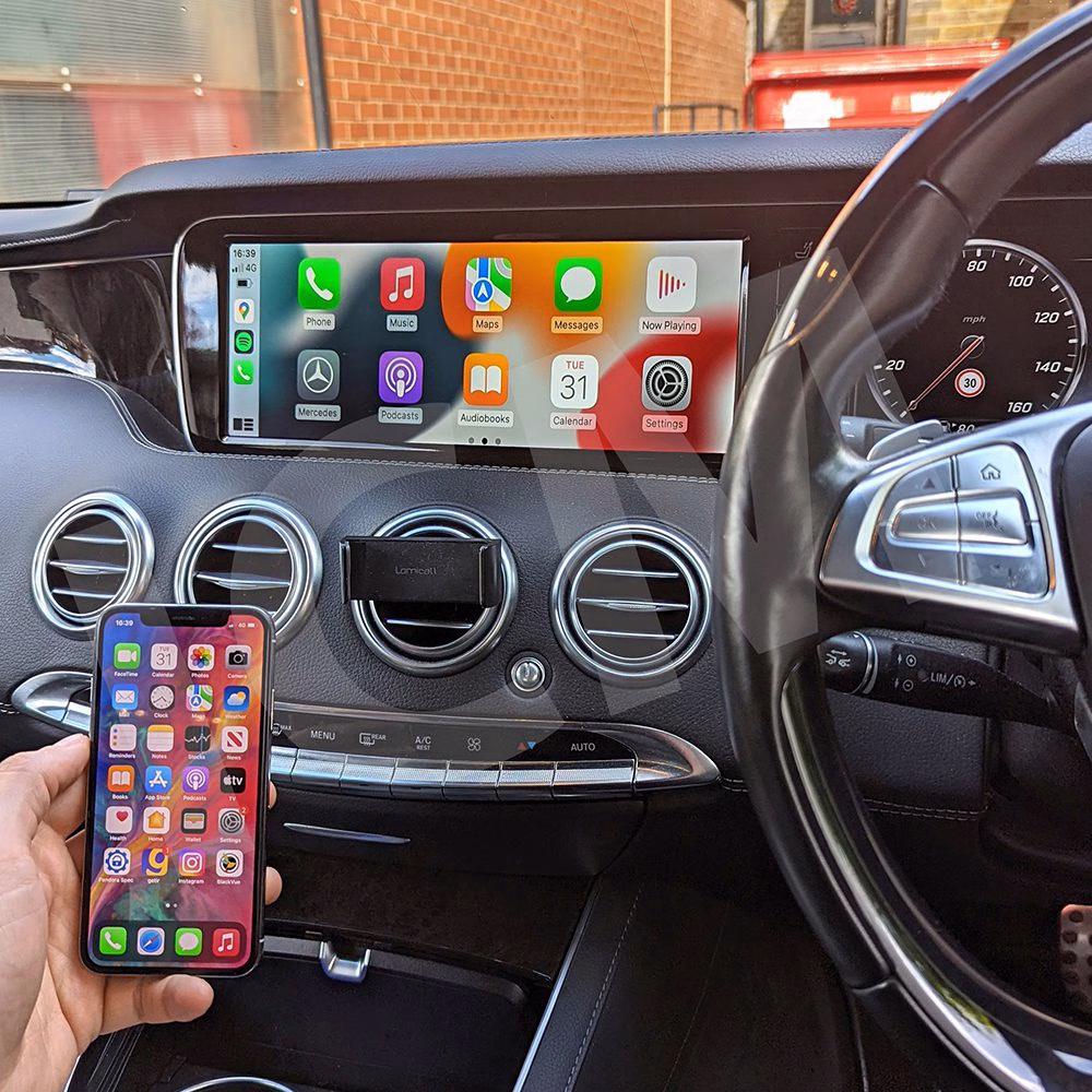 Upgrade your Mercedes S-class with Apple CARPLAY & ANDROID Auto to your existing system. You can run apps from your iPhone Via CarPlay & Android Auto without touching your iPhone. You can control this kit via the original PSA SMEG touch screen and via voice control (Siri).