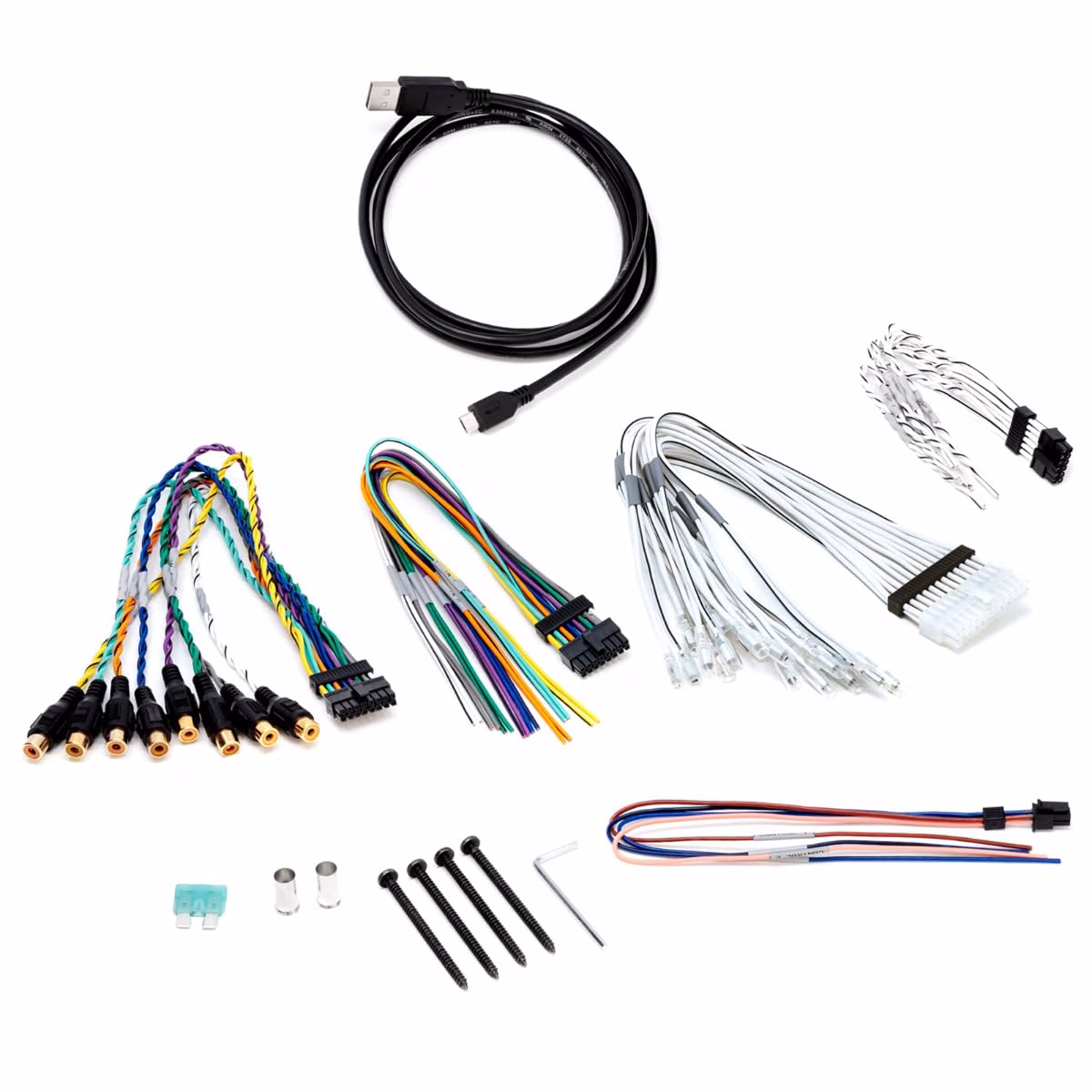 One featuring 8 pairs of labeled cables for the connection to high-level output OEM sources