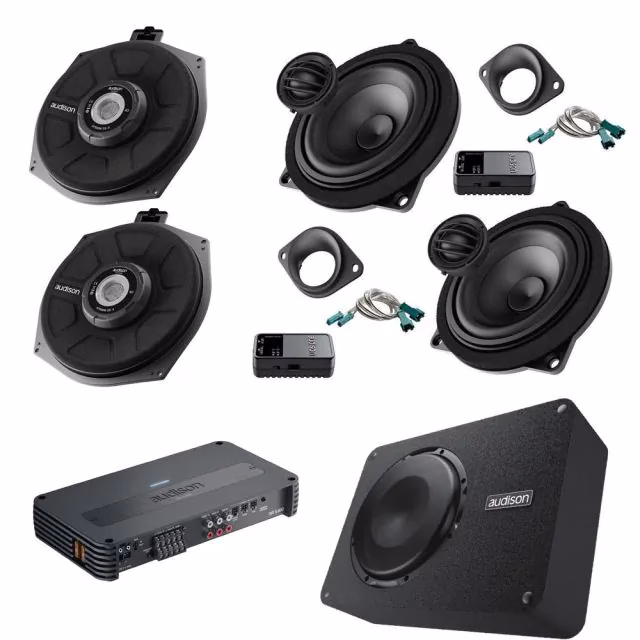 Audison BMW Audio Upgrade 4″ Component Speakers + Underseat Subs + 5 Channel Amp Bass