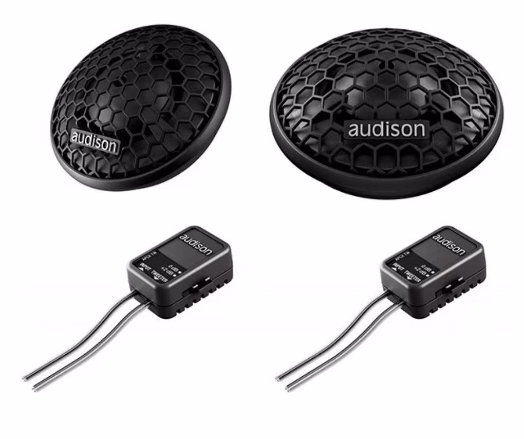 - Audison Prima AP8 & AP1 Tweeter – Front speaker upgrade with 8″ mid-bass speakers and tweeters