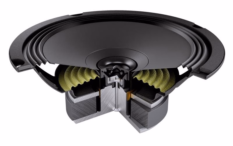 The 6.5″ cones surround features the exclusive shallow “Triple Wave” profile, for maximum excursion linearity.