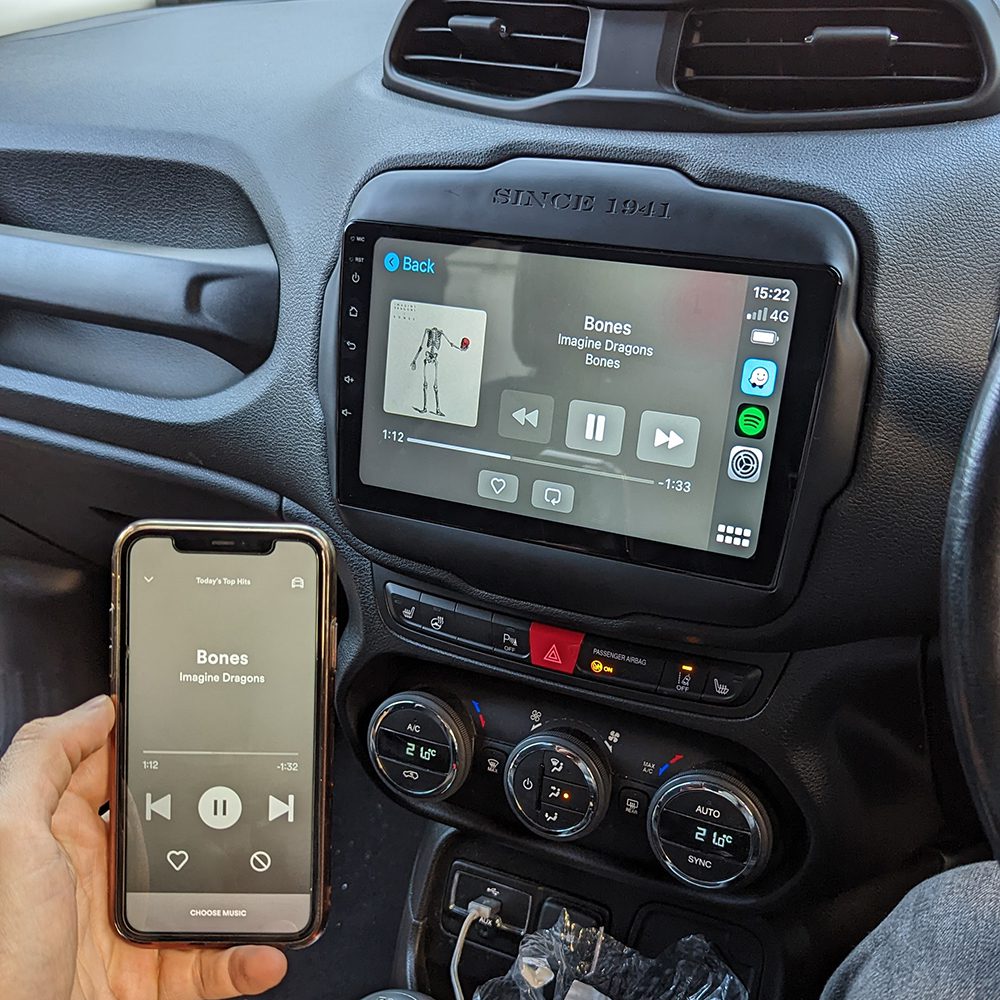 9'' Android IPS Screen Car Stereo Multimedia Player GPS Navigation System with Apple CarPlay & Android Auto Custom Fit for Jeep Renegade