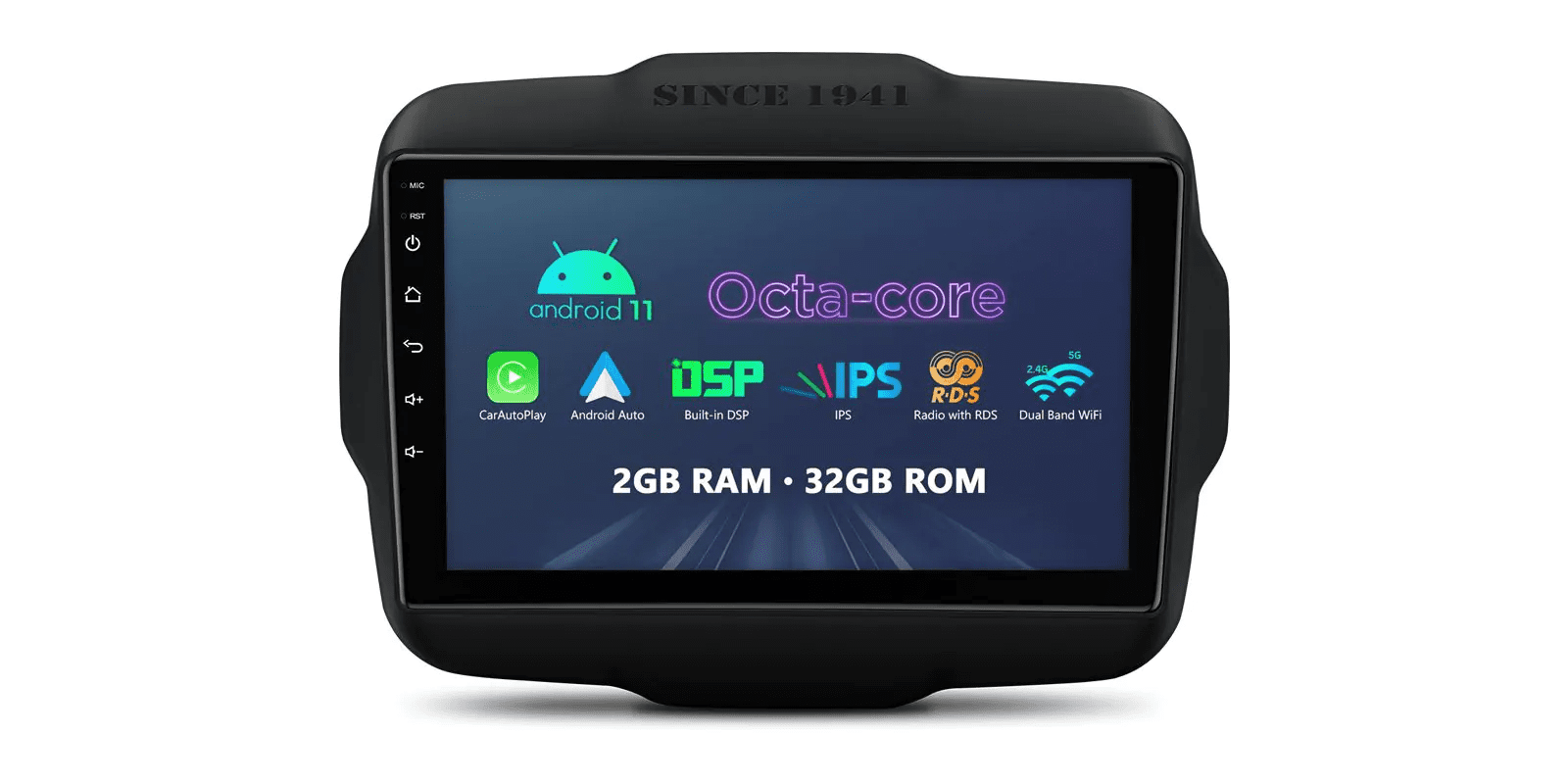 Android 12 Octa Core 2GB DDR4 RAM + 32GB ROM 9” 1280×720 IPS Screen Car Stereo Multimedia Player GPS Navigation System with Dual UI Automotive-grade Hardware Built-in CarAutoPlay & Android Auto & DSP Radio with RDS Coaxial Audio Output Custom Fit for Jeep Renegade