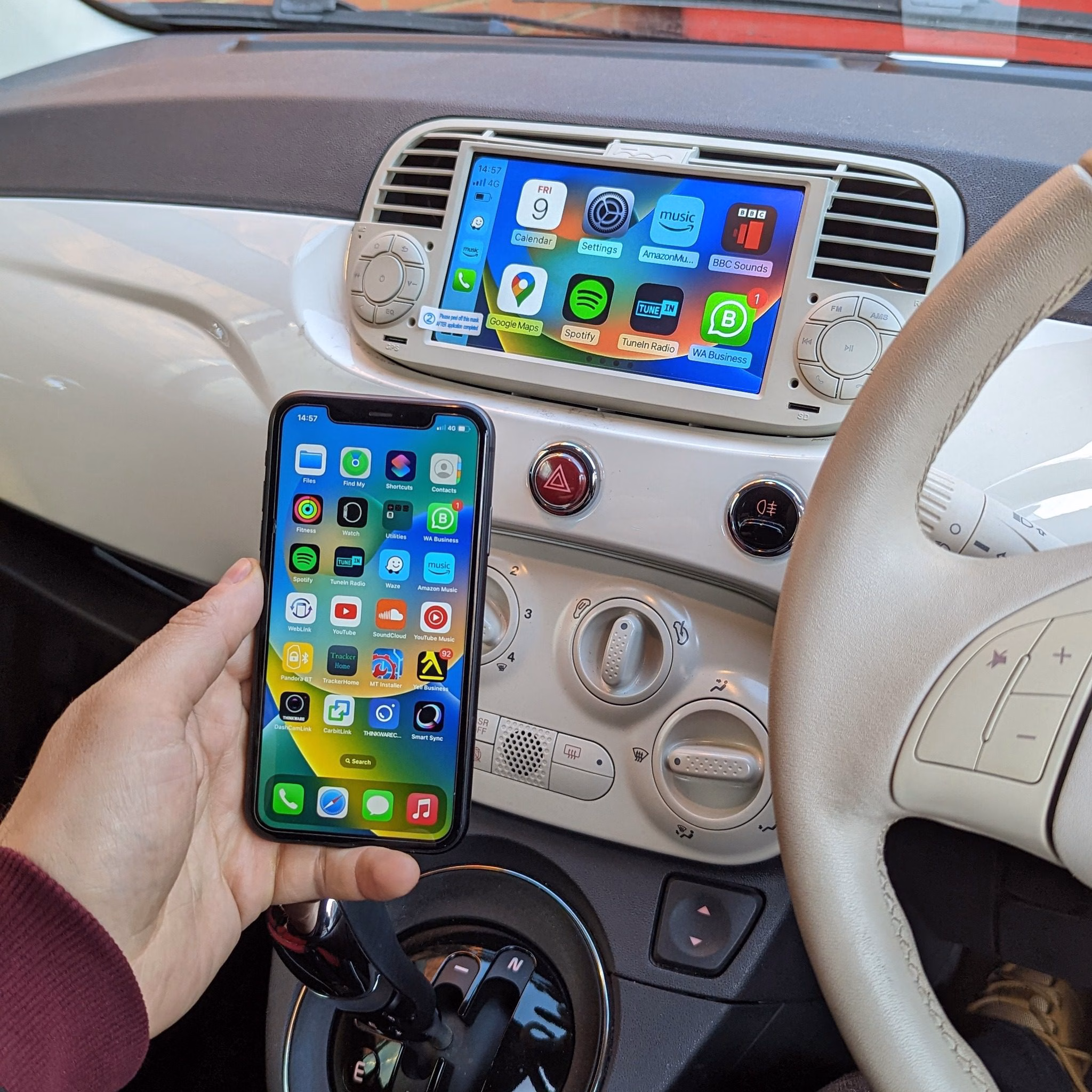Android Multimedia Car Stereo with 7″ Display Built-in Apple CarPlay & Android Auto Custom Fit for Fiat 500 2007-2015