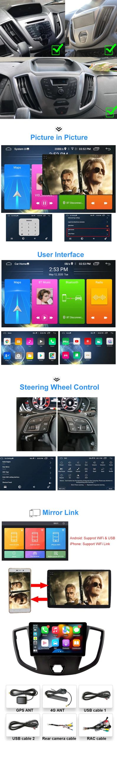 9” Android Car Stereo Multimedia System With Apple CarPlay For Ford Transit 2015-2018