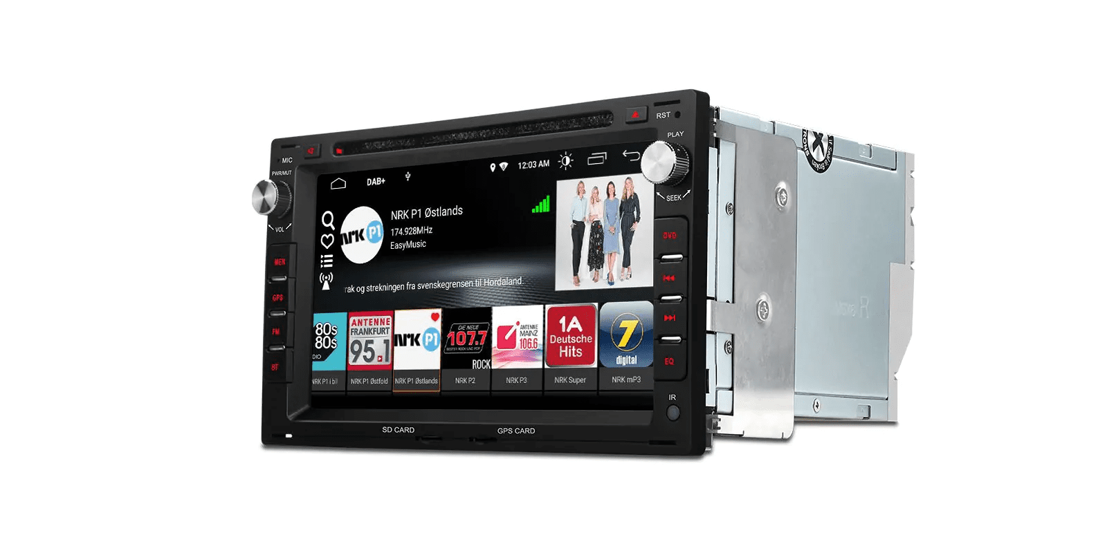 Android Multimedia Car Stereo With 7″ Display Built-In Apple CarPlay & Android Auto Custom Fit For VW/Skoda/Seat (1996-2008)