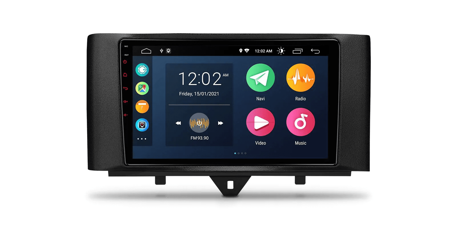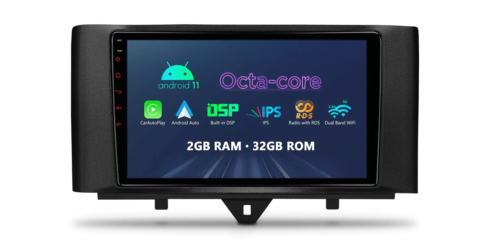 Android 12 Octa Core 2GB DDR4 RAM + 32GB ROM 9” 1280×720 IPS Screen Car Stereo Multimedia Player GPS Navigation System with Dual UI Automotive-grade Hardware Built-in CarAutoPlay & Android Auto & DSP Radio with RDS Coaxial Audio Output Custom Fit for Smart Fortwo