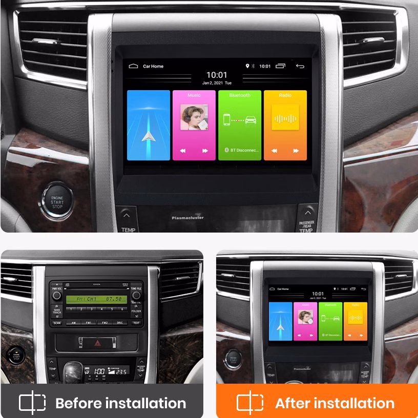 9” Android Multimedia Carplay Stereo With Bluetooth, Wifi, Usb, Aux Custom Fit For Toyota Alphard 2008-2015